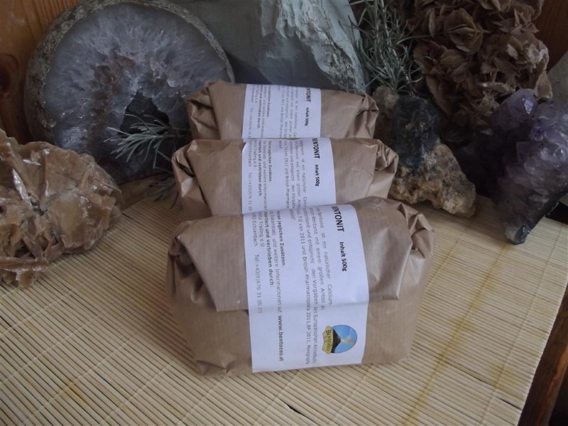 •Innerlich ähnlich wie Aktivkohleals altes Hausmittel bei Magen-Darm-Beschwerden. Unser Montmorillonit (Bentonit)stabilisiert den Schleimfilm auf der Schleimhaut im Verdauungstrakt und adsorbiert kranheitsauslösende Stoffe und Keime.