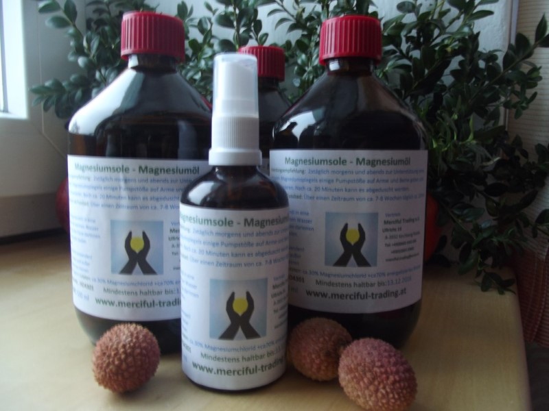 Magnesiumöl oder MagnesiumSole für die äußerliche Anwendung – Transdermales 100% reines Magnesium. Magnesiumöl ist kein Öl – nur die weiche Konsistenz erinnert an ein Öl und wird für die äußerliche Anwendung verwendet.
