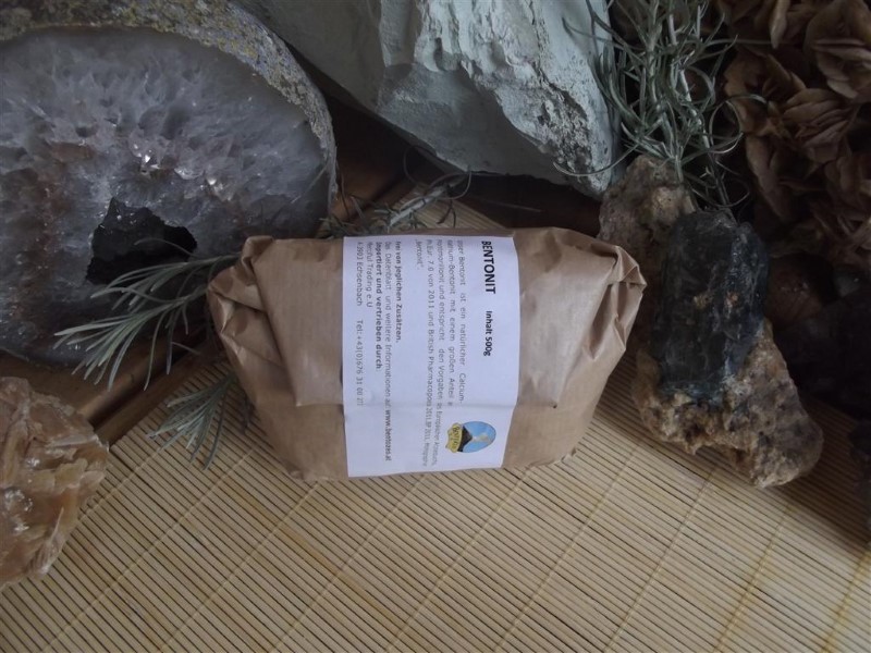 •Innerlich ähnlich wie Aktivkohleals altes Hausmittel bei Magen-Darm-Beschwerden. UnserMontmorillonit (Bentonit)stabilisiert den Schleimfilm auf der Schleimhautim Verdauungstrakt und adsorbiert kranheitsauslösende Stoffe und Keime.