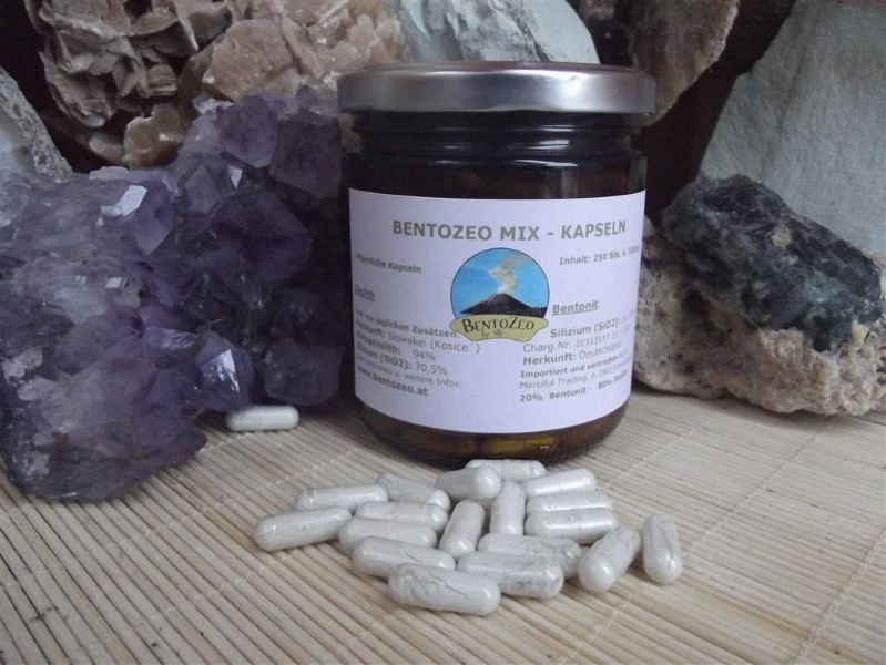 Ohne Magnesiumsterat, ohne Fließmittel, da mit mechanischer Kapselfüllmaschine abgekapselt! Unsere Mischung vereint die positiven Eigenschaften von Zeolith und Bentonit.