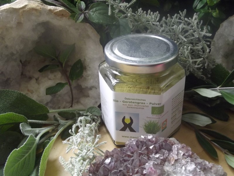 Rohkostqualität – Dieses hochwertiges Bio-Gerstengras wird im Mühlviertel auf mineralstoffreichen Urgesteinsböden angebaut. Es wird geerntet und geschnitten bevor sich die Ähre entwickelt. Danach wird es schonend getrocknet und zu Pulver vermahlen. Da