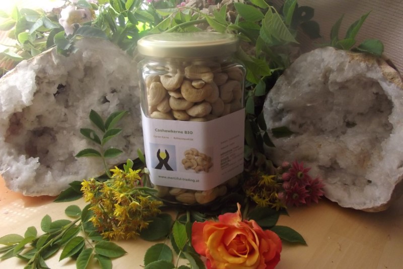 Die nierenförmigen, 2-3 cm großen, hellen Cashewkerne enthalten besonders viele Mineralstoffe wie Calcium, Magnesium, Eisen, Phosphor und Kupfer. Außerdem verfügen die Cashewkerne über einen hohen Vitamingehalt, vor allem an B1, B3 und B5, und sind durch ihre Mineralstoffe ein guter Energiespender. Zusätzlich sind Cashewkerne besonders reich an Tryptophan, einer essentiellen Aminosäure.