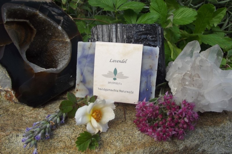 Hergestellt aus: Kokosfett, Rapsöl, Olivenöl, Kakaobutter, Aprikosenkernöl, Rizinusöl, Natriumhydroxid, energetisiertem Wasser, Lavandinöl, Lavendelöl, Patchouliöl, Kosmetikfarbstoff, Lavendelblüten. Enthält Geraniol, Limonene und Linalool als natürliche Bestandteile der ätherischen Öle.