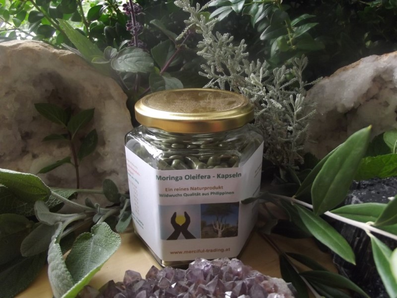 Ohne Magnesiumsterat, ohne Fließmittel, da mit mechanischer Kapselfüllmaschine abgekapselt wird! Moringa Kapseln (pflanzliche Kapseln) 200 Stk a´340mg – Wildwuchs-Blattpulver aus Philippinen. Unser Wildwuchsblattpulver ist rückstandskontrolliert und besit