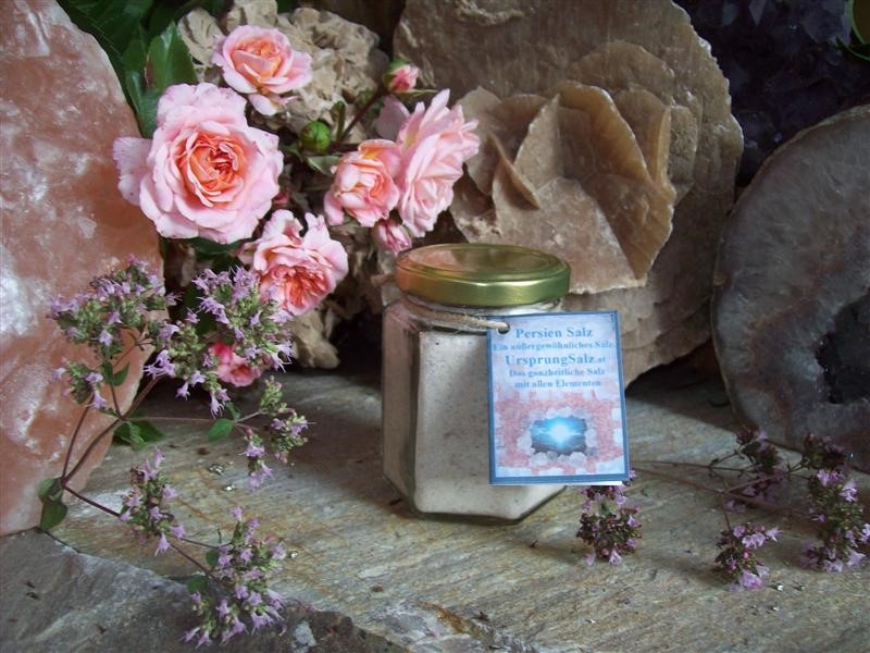 Das Persische Blausalz ist ein wunderbares und seltenes Salz. Durch dieVerschiebung  der Kristallgitterstruktur, kommt die blaue Farbe, die eigentlich grün sein sollte, zum Vorschein, welche vom Mineral Sylvin stammt. Sehr interessant ist Perser Salz auch geschmacklich – erst macht es einen extrem salzigen Eindruck, der kurz danach  angenehm würzig wird.